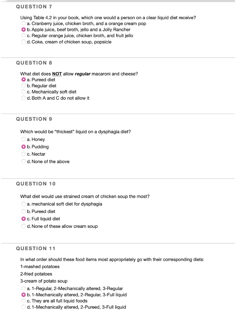 Juice with pulp broth strained cream soup strained cereal pudding and ice cream are also included.